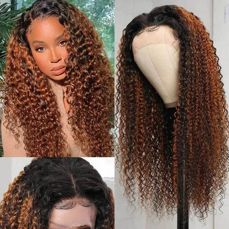From $177.65$227.75Unit price /Unavailable4/27 Honey Blonde Highlight Lace Front Wigs Ombre Color Jerry Curly Human Hair Wigs