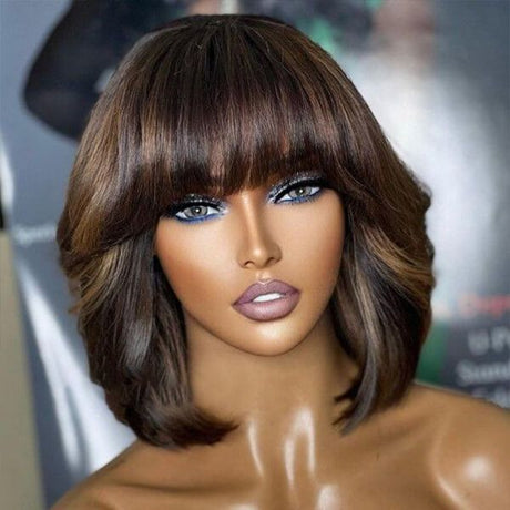 From $239.99Unit price /UnavailableHuman Hair Brown Highlight Bob With Bangs Lace Front Wig