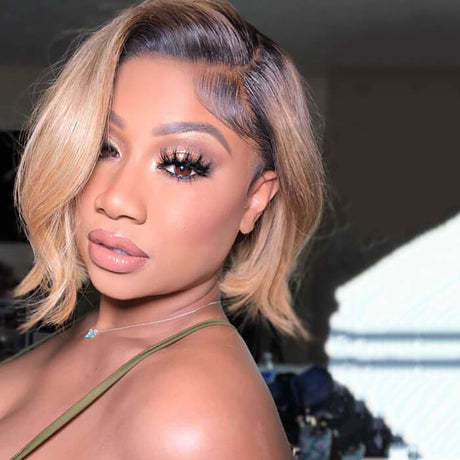 From $169.99Unit price /UnavailableChin Length Side Part Bob Blonde with Dark Roots Human Hair Lace Front Wigs