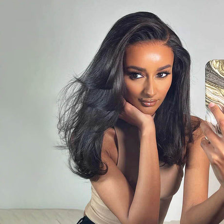 Layered Cut Wavy Human Hair Lace Front Wig with Butterfly Bangs