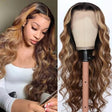 13x4 Lace Frontal Wigs Hair Honey Brown Ombre Wavy Human Hair