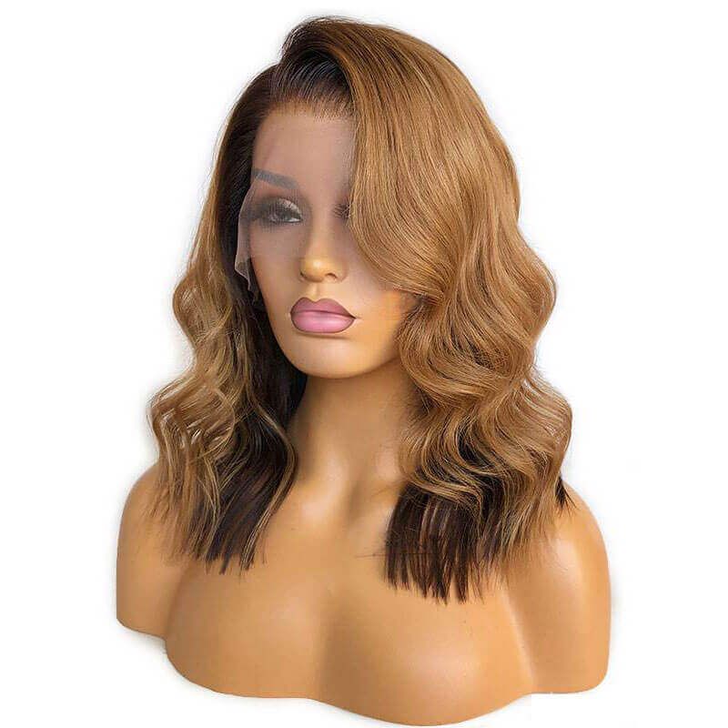 Blonde Highlight Lace Front Bob Wig Mix Color 1B/27# Human Hair Bob Wig 150% Density
