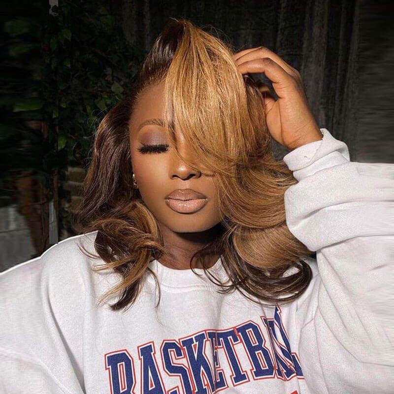 13x6 Lace Honey Blonde Human Hair Wig With Dark Brown Color 150% Density
