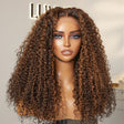 180% Density Copper Highlight Kinky Curly Glueless 5x5 Closure Lace Curly Wig