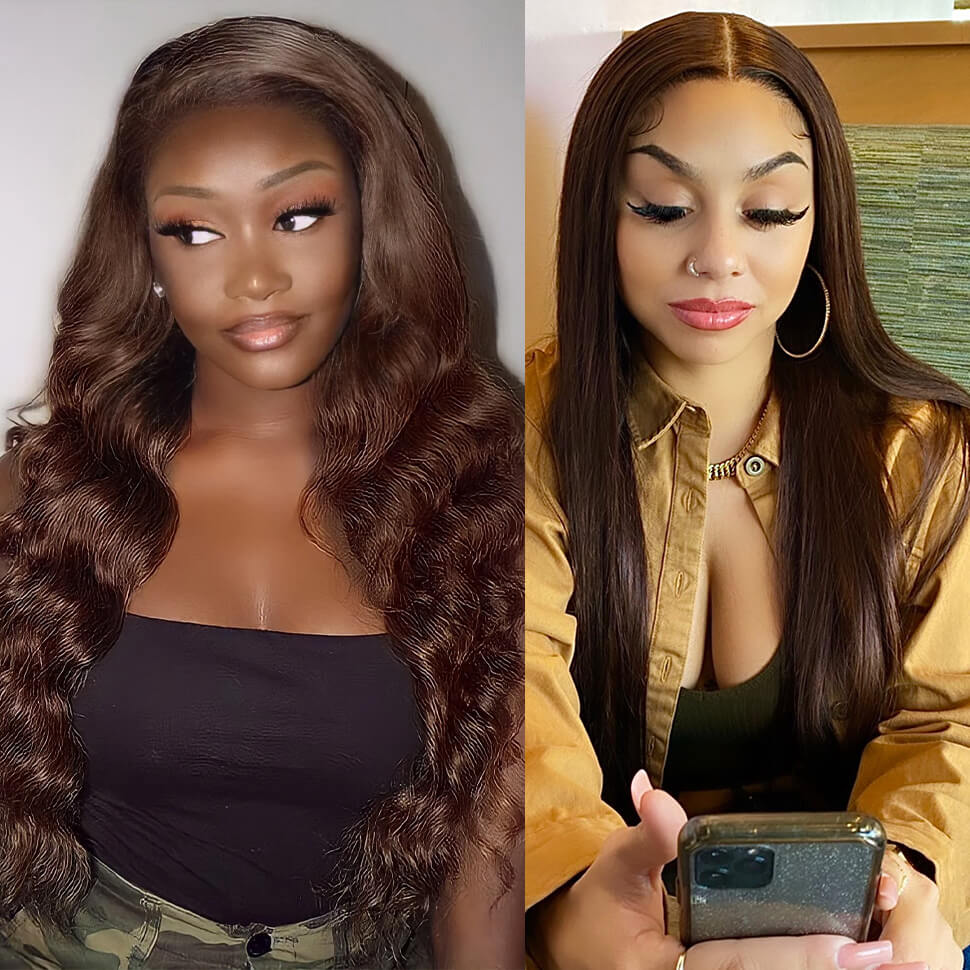 #4 Brown Wigs 13*6 HD Lace Front Wigs Straight/Body Wave Pre-Colored Human Hair Wigs