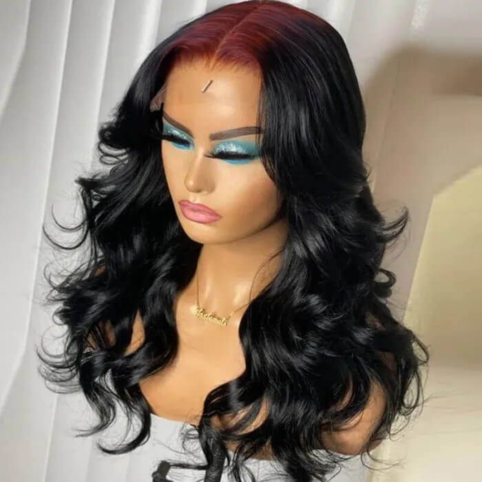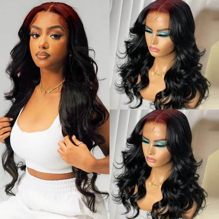 99J Colored Roots Two-tone Hair Colors Straight Human Hair 13x4 Lace Front Wig
