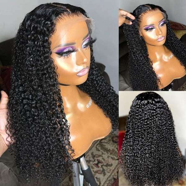 Afro Curly Invisible Lace Glueless Frontal Lace Wig 100% Human Hair