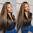 Balayage Highlight 13x4 5x5 HD Lace Frontal/Closure Wigs #1B/30 Straight Human Hair Wigs Free Part