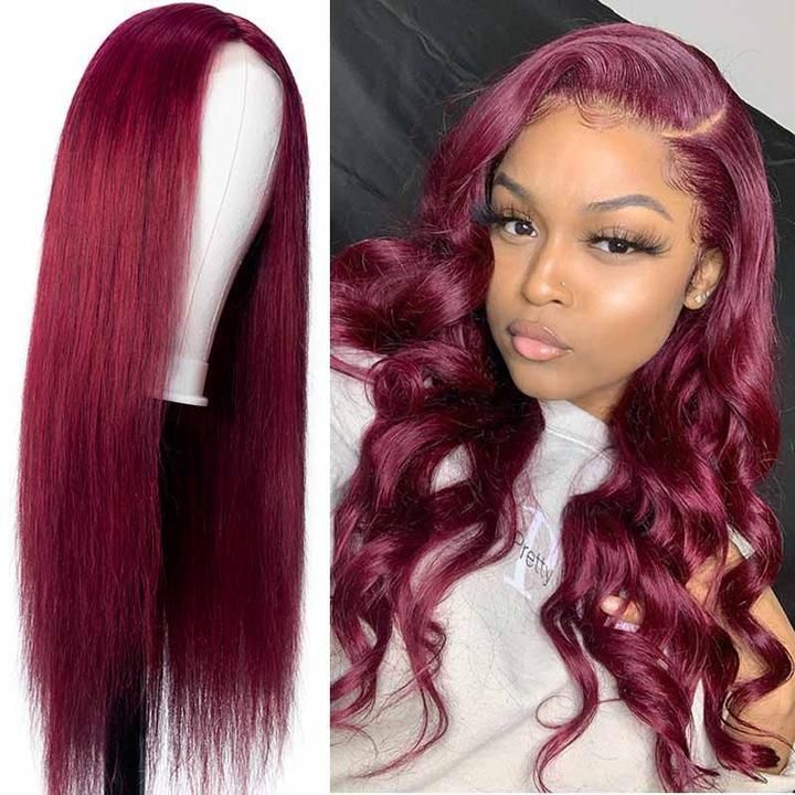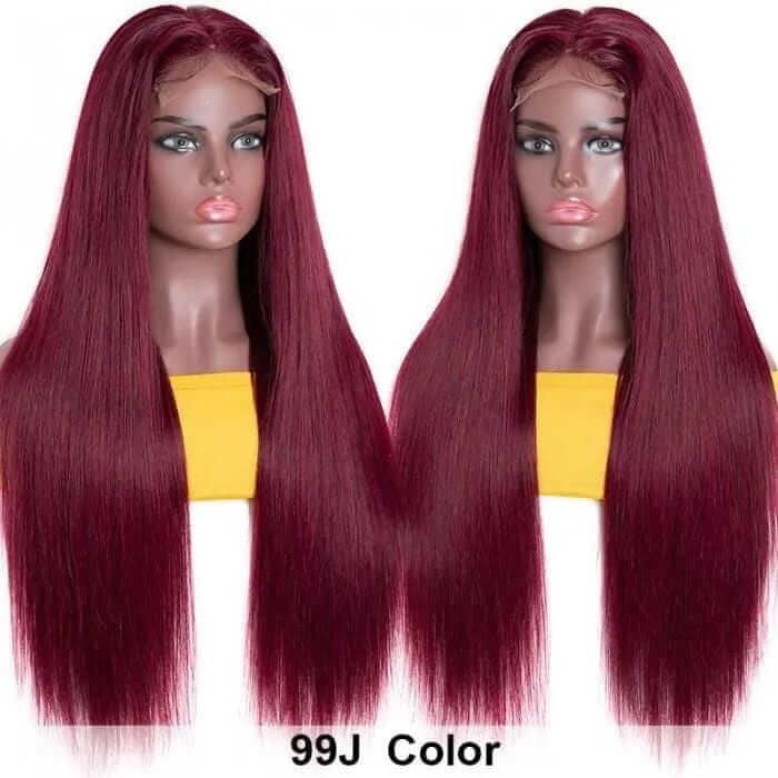 Best Precolored 4X4 Lace 99J Silk Straight Human Hair Wigs