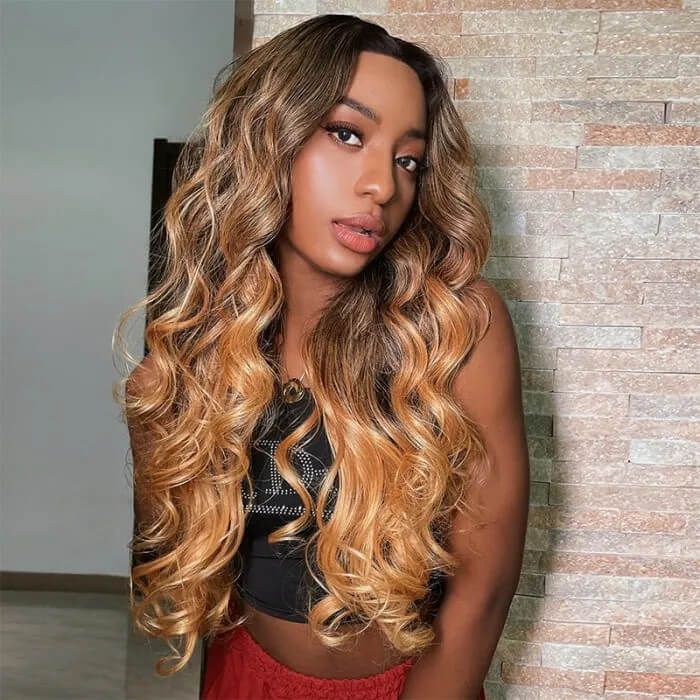 Black Blonde Highlights Wavy 13x4 Lace Front Wig Human Hair