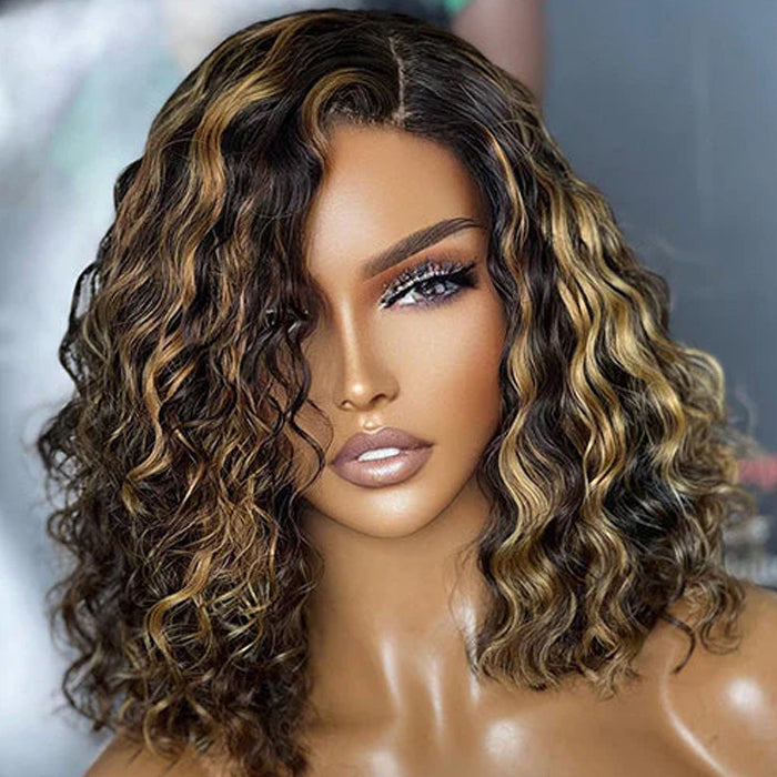 Blonde Highlight Lace Front Bob Wig Mix Color 1B/27# Human Hair Bob...