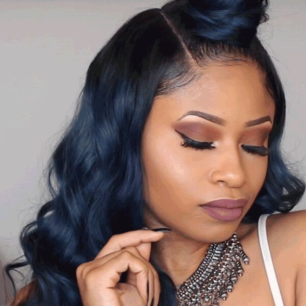 Body Wave Navy Blue Highlights 13x4 Lace Front Wig Human Hiar