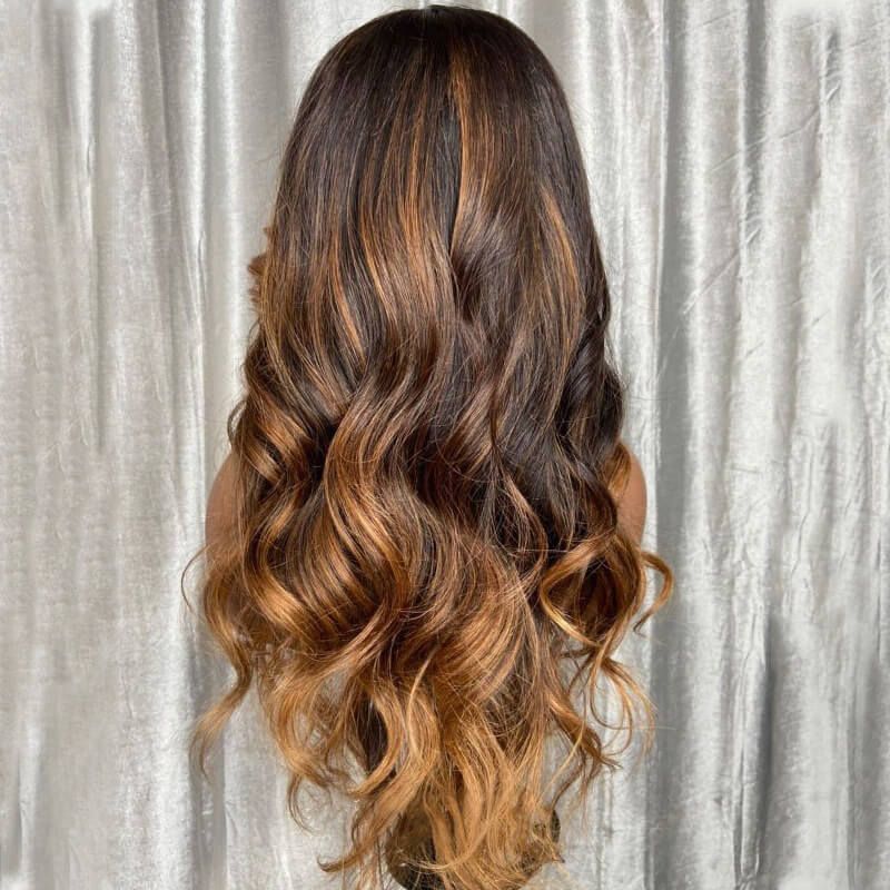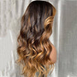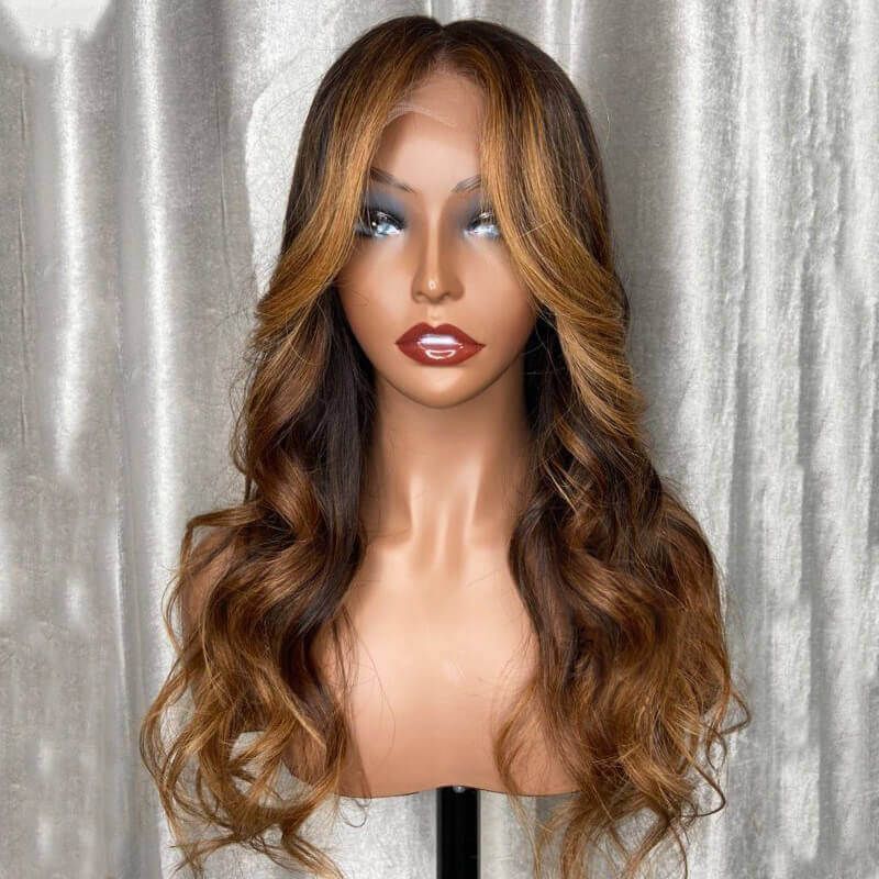 Caramel Brown with Blonde Highlights Wavy Lace Front Wigs Human Hair