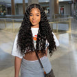 Deep Wave Human Hair 13X6 Lace Front Wig 180% Density Pre-plucked Invisible Knots