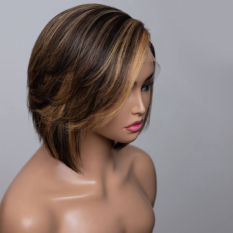Blonde Highlight Lace Front Bob Wig Mix Color 1B/27# Human Hair Bob Wig 150% Density