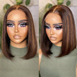 Glueless Chestnut Brown Highlights Straight 4x4 Closure Bob Wig 100% Human Hair