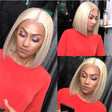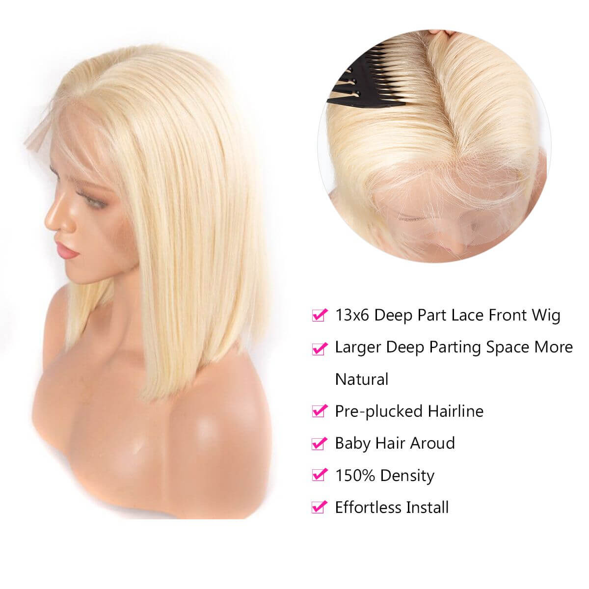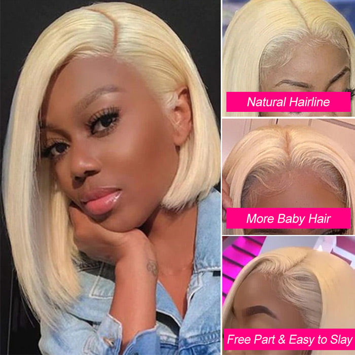 613 Blonde Straight Bob Wigs Human Hair Pre Plucked Glueless Lace Wig 150% Density