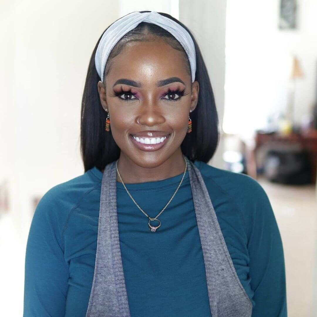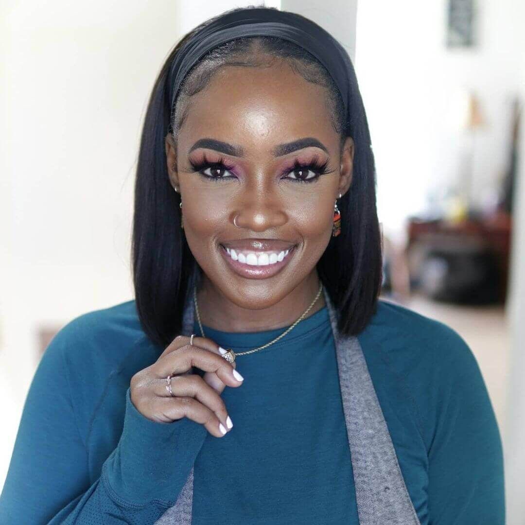 Bob Wig Headband Wig Natural Black 180 Density 100% Human Hair Wig