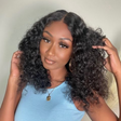 Natural Black Deep Wave / Loose Wave Minimalist HD Lace Short Wig 100% Human Hair