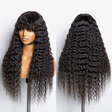 Boho-Chic | Romantic Bohemian Curly Minimalist Lace Glueless Long Wig with Cute Bangs 100% Human Hair