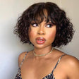 Short Cut Loose Curl Bob Human Hair 4x4 Lace Closure Wig With Wispy Bangs